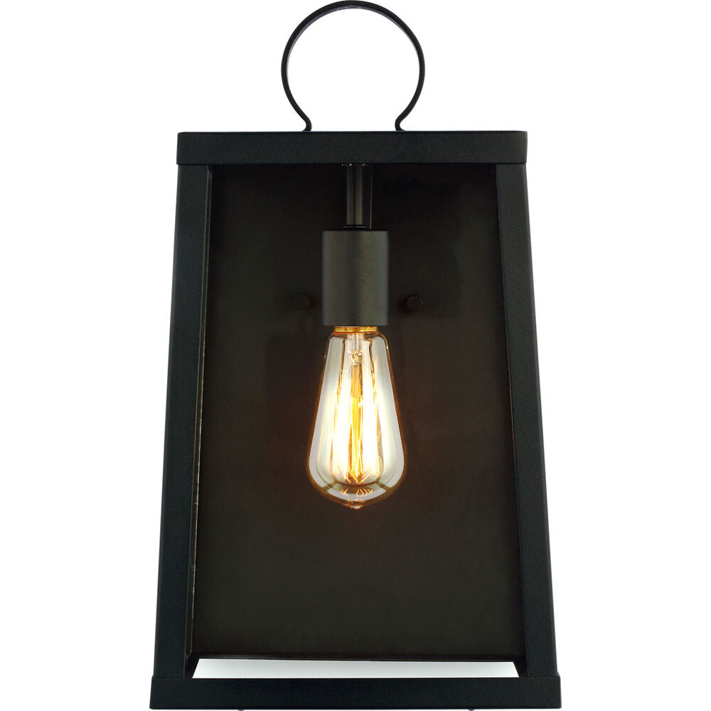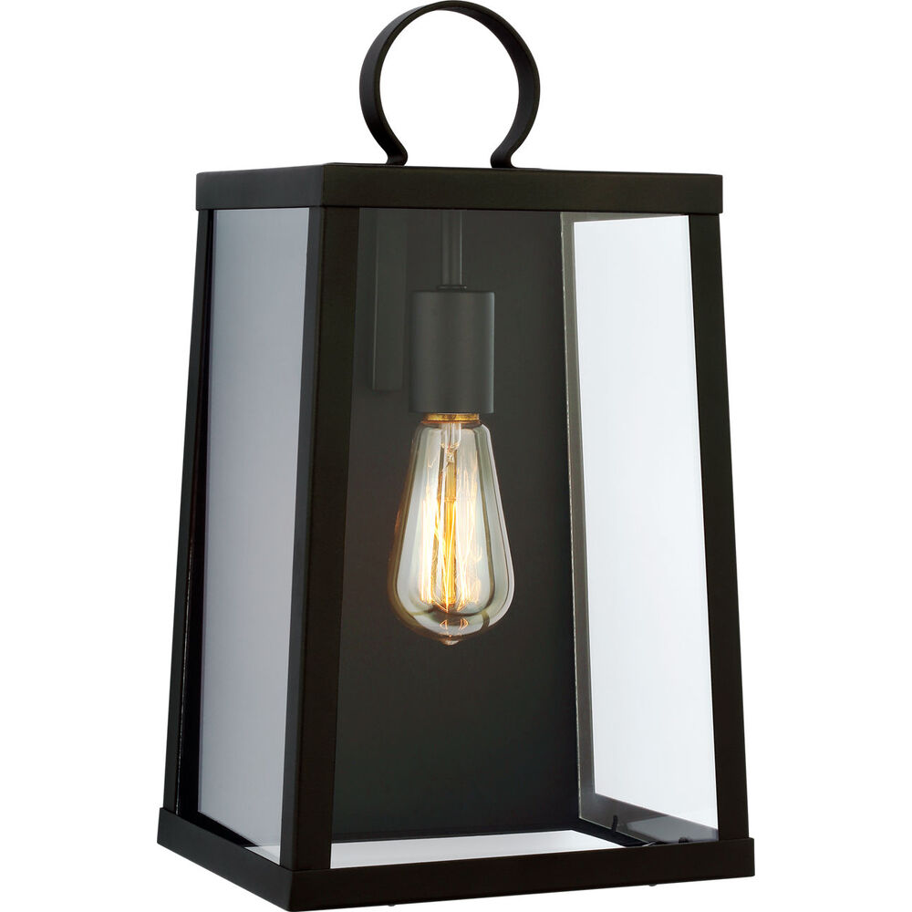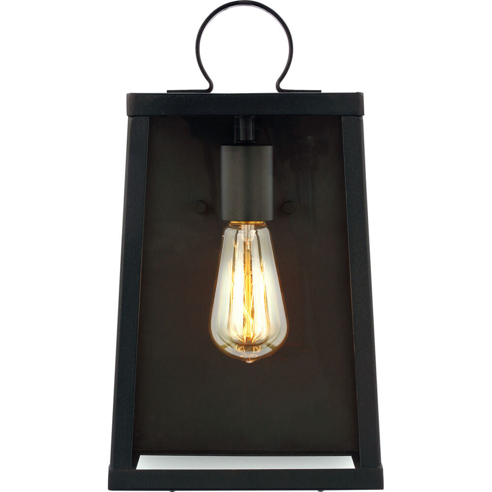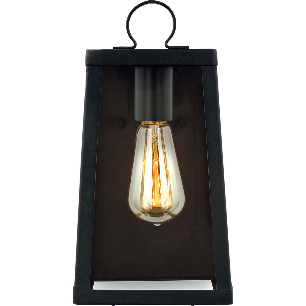 Showcase a classic look with rugged flair in the Marinus series. Utilizing a modern and sharply squared off lantern shape to frame a single bulb, these fixtures give a new look to a familiar shape. Through the clear glass exterior, light shines with brightness and longevity. With a vintage-style bulb inside of a clear glass, it's sure to enhance the nostalgic touch you're looking for. The simple textured Blacksmith finish of the Marinus is designed to enhance you home's curb-appeal. Available in a variety of sizes for flexible options to match and complement a wide variety of exterior settings.