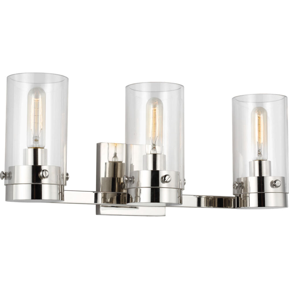 Cylindrical Clear Extruded Glass shades paired with rich Burnished Brass or contemporary Polished Nickel detailing