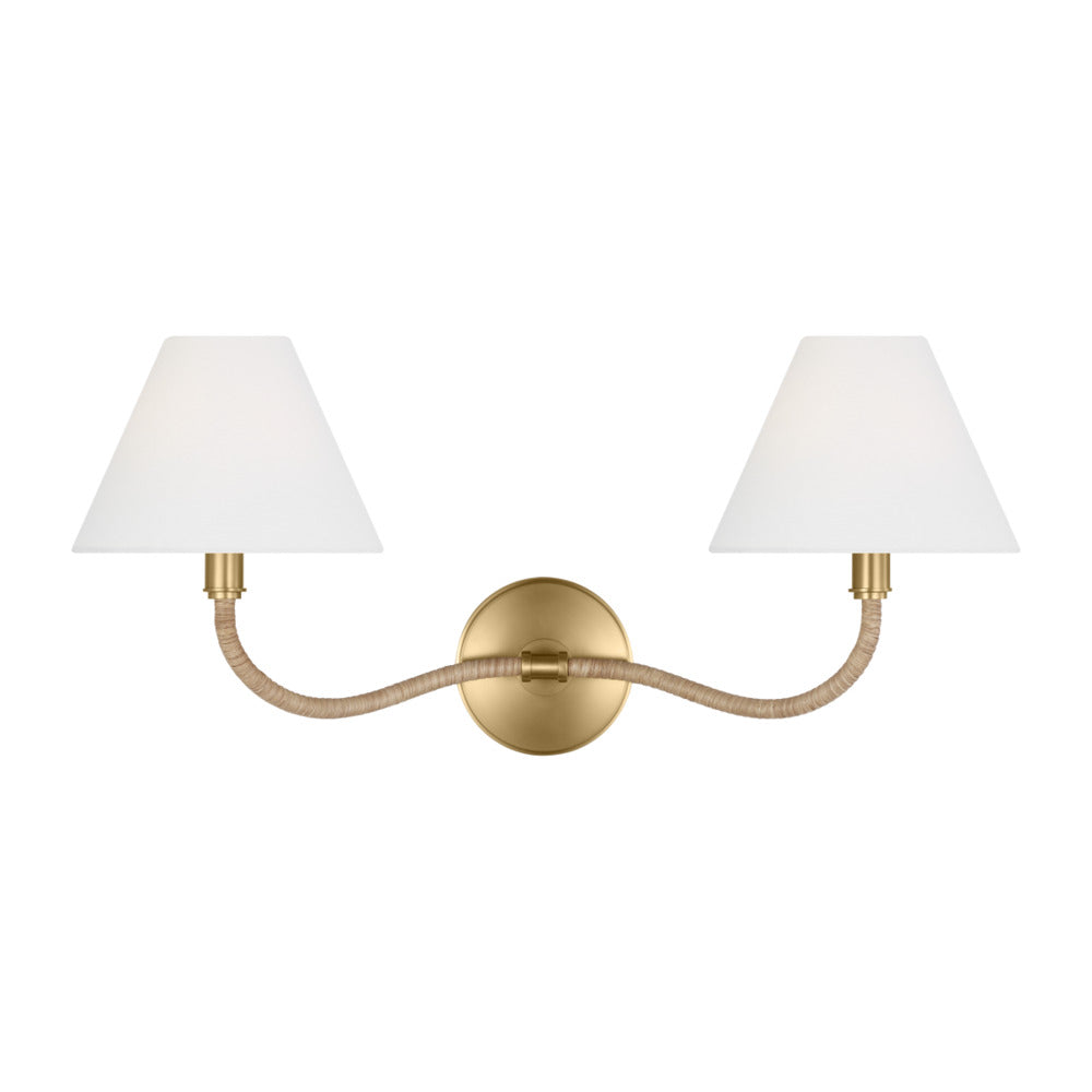 Visual Comfort Studio CW1302BBS Double Sconce in Burnished Brass / Blonde Rattan