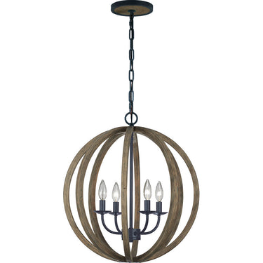 The Allier series makes an elegantly rustic statement by blending warm kiln-dried Weathered Oak Wood with Antique Forged Iron hardware on a modern orb silhouette.