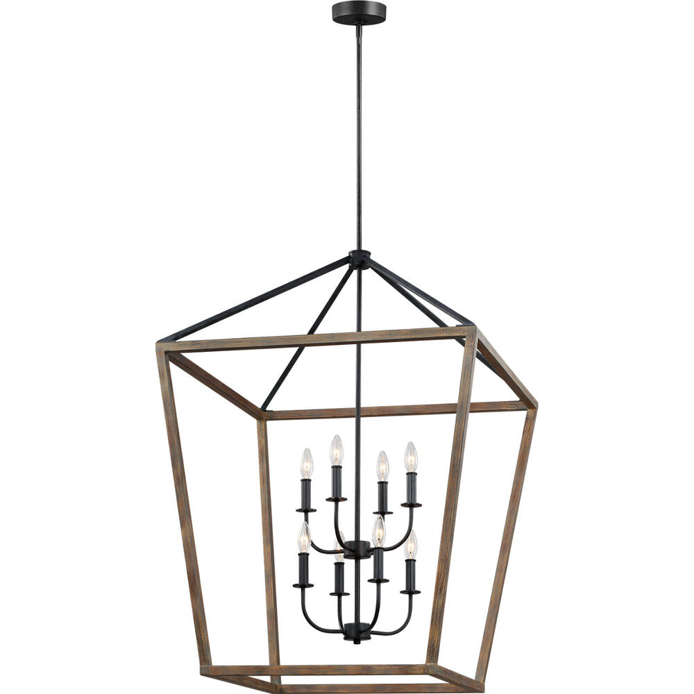 The Gannet Series exudes rustic flair with a two-tone finish of painted, distressed Weathered Oak on an Antique Forged Iron metal frame. Crisp edges and bold lines pair with open, airy frames on the sides and crown that soften this iconic lantern silhouette.