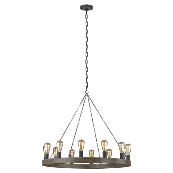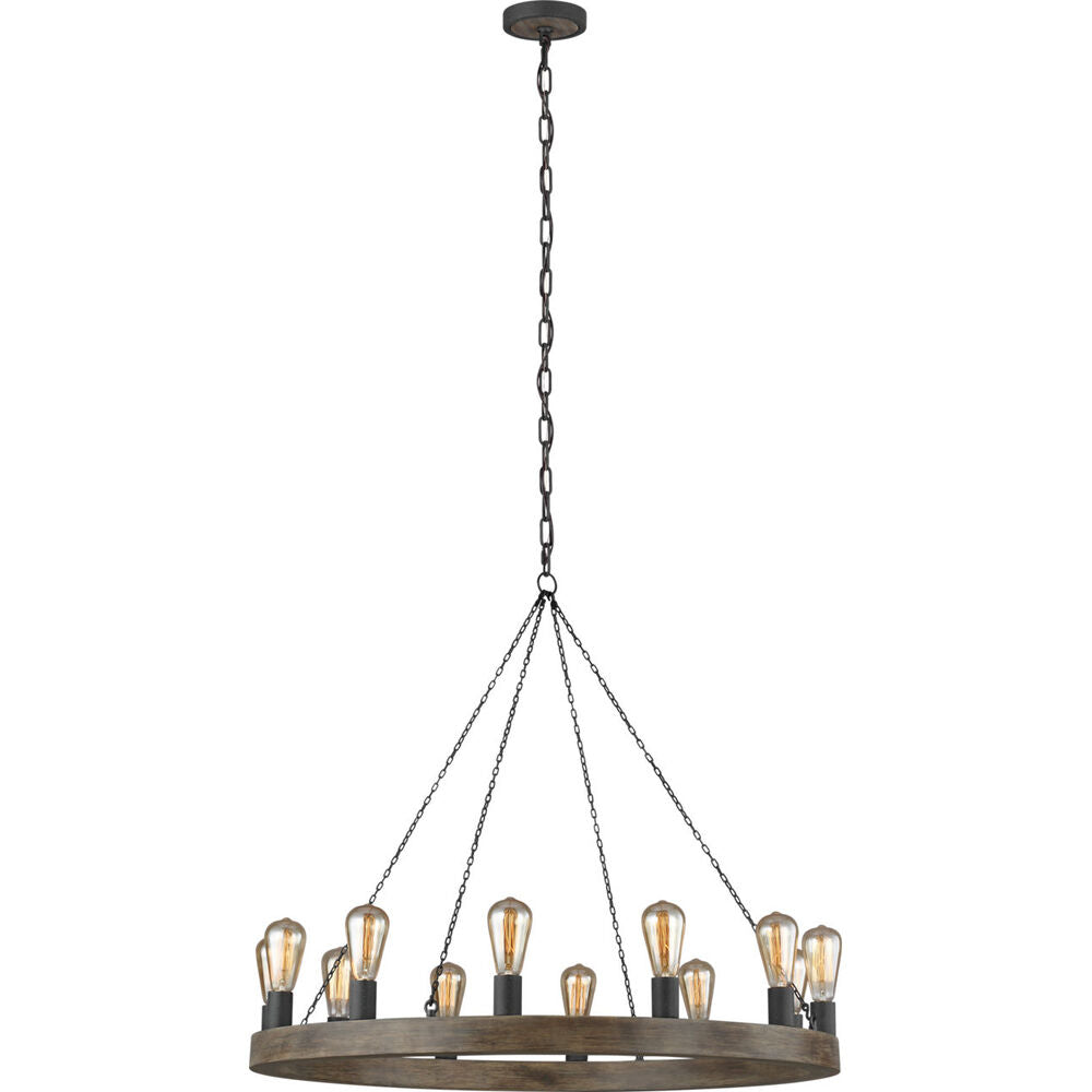 Visual Comfort Studio F3932/12WOW/AF Medium Chandelier in Weathered Oak Wood / Antique Forged Iron