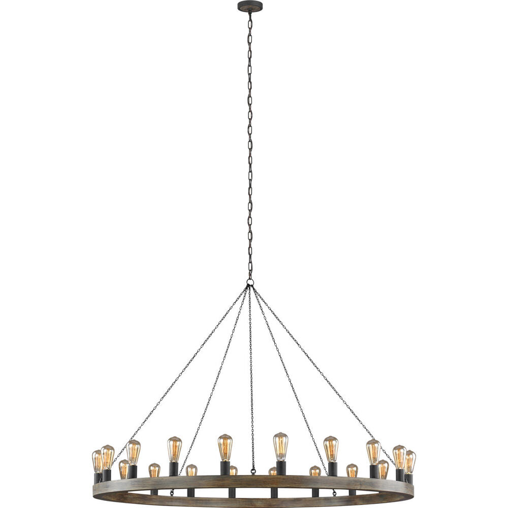 Visual Comfort Studio F3933/20WOW/AF Large Chandelier in Weathered Oak Wood / Antique Forged Iron