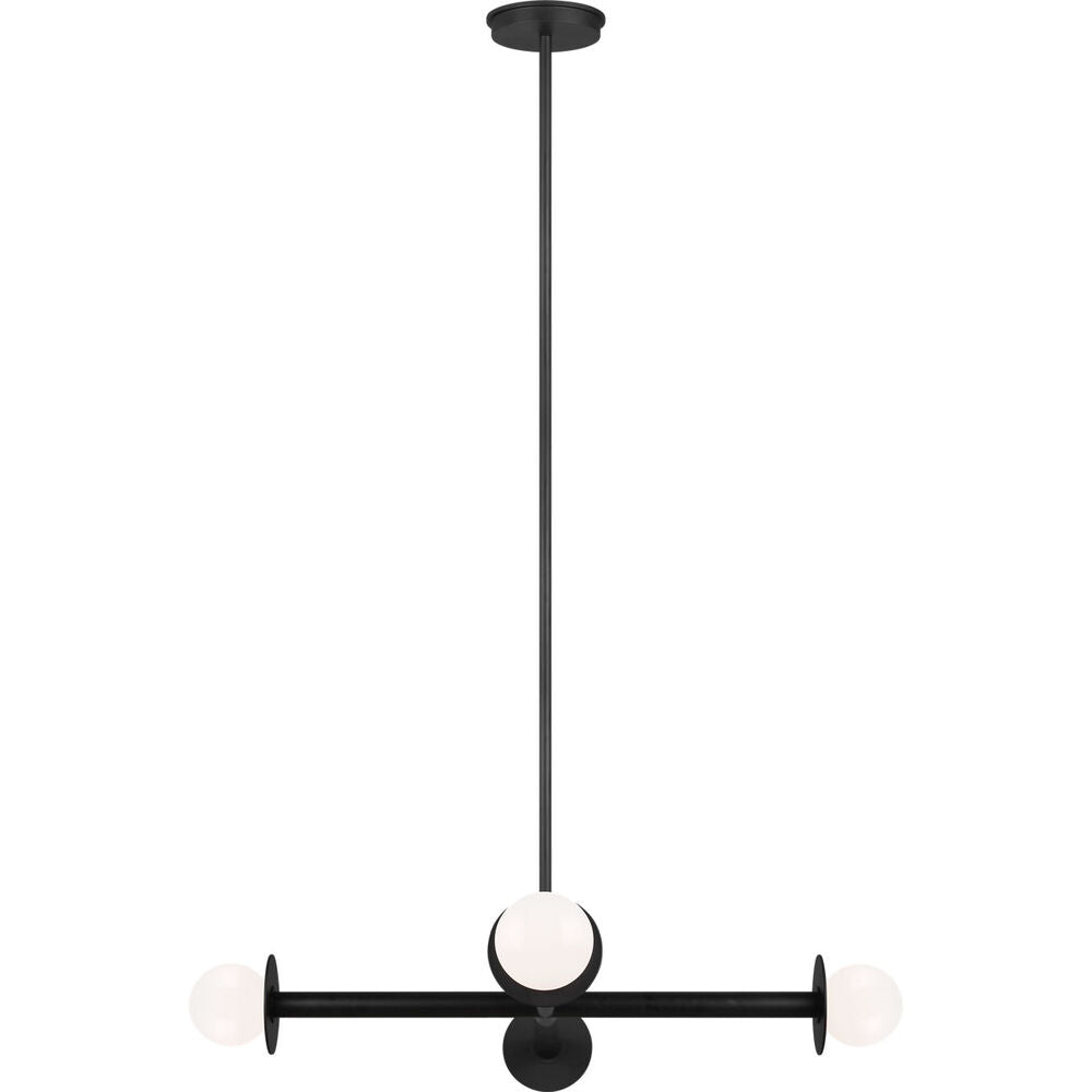 Nodes task, ceiling and wall lighting is minimal yet bold, highlighting Kelly's distinctive juxtaposition of mixed-materiality and curvilinear form. Light radiates from milk glass globes set against metal discs. All fixtures can be used or without the discs. The cast canopy is available in Burnished Brass or Midnight Black. Hanging fixtures within this family feature black fabric cords, while pivot sconces can be cord and plug or hard wire.