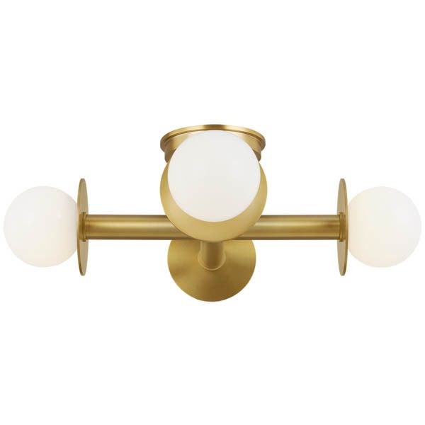 Nodes task, ceiling and wall lighting is minimal yet bold, highlighting Kelly's distinctive juxtaposition of mixed-materiality and curvilinear form. Light radiates from milk glass globes set against metal discs. All fixtures can be used or without the discs. The cast canopy is available in Burnished Brass or Midnight Black. Hanging fixtures within this family feature black fabric cords, while pivot sconces can be cord and plug or hard wire.
