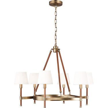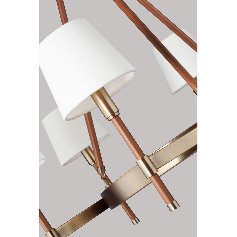 Visual Comfort Studio LC1006TWB Medium Chandelier in Time Worn Brass / Saddle Leather