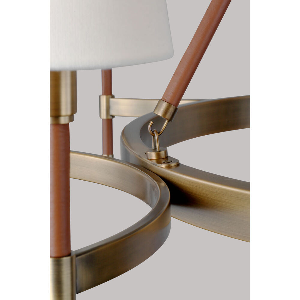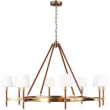 Visual Comfort Studio LC1018TWB Large Chandelier in Time Worn Brass / Saddle Leather