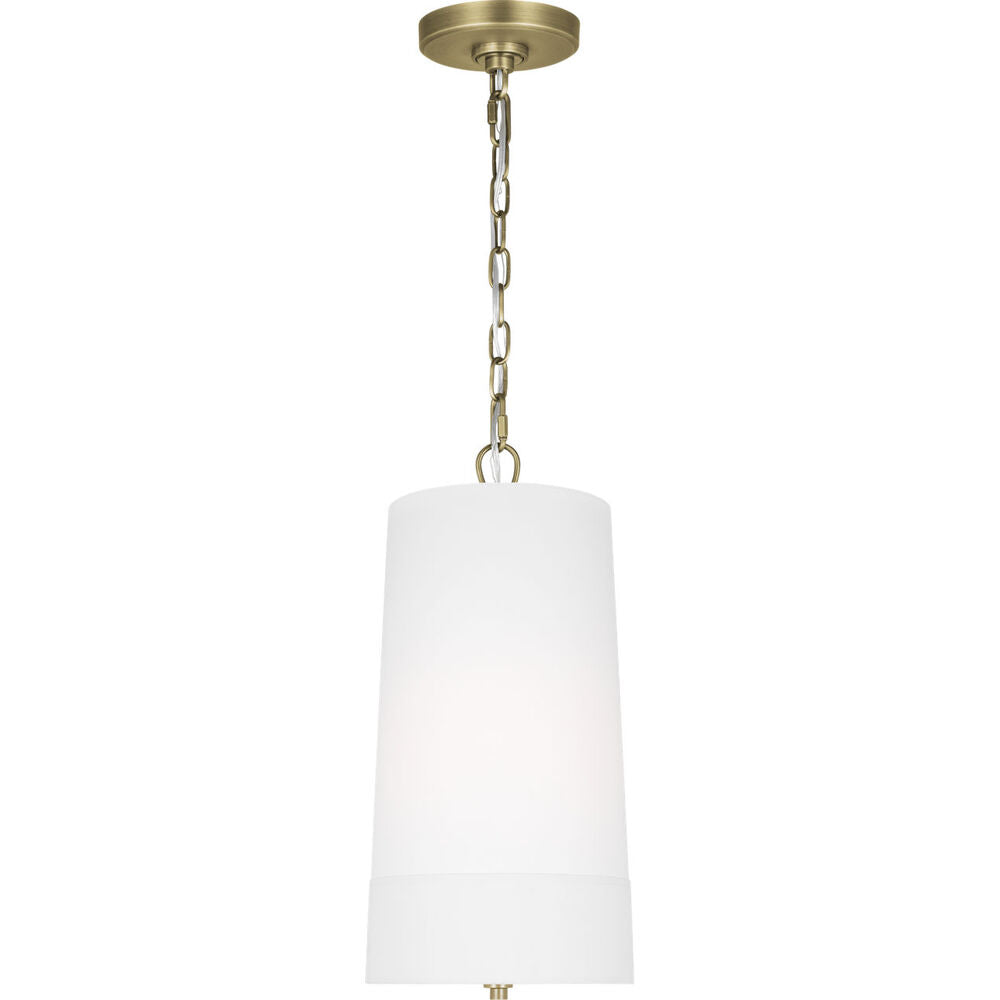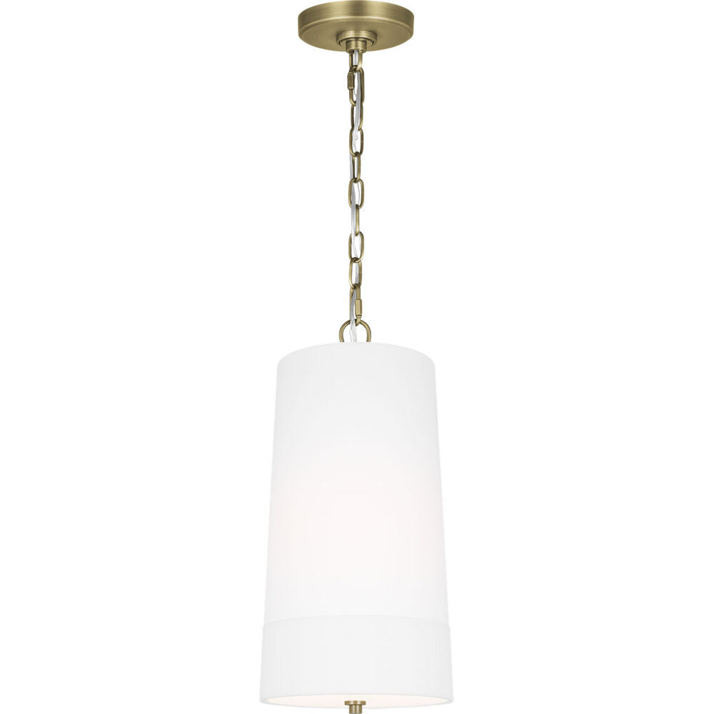 Visual Comfort Studio LP1101TWBWLW Tall Pendant in Time Worn Brass / White Linen w/White Inlay