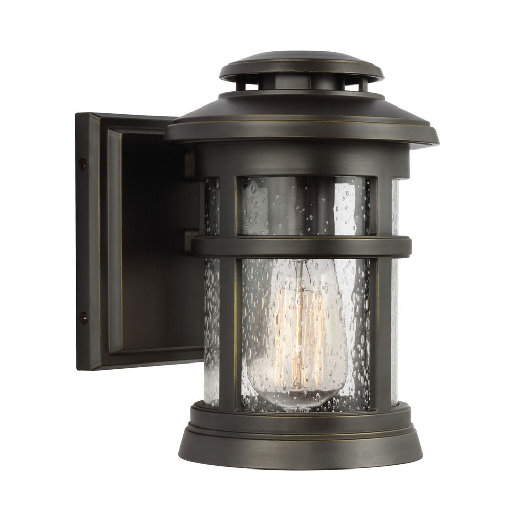 The nautical-inspired Newport outdoor lighting is complete with lighthouse details including a vented top and a detailed cast frame surrounding an inner Opal Etched glass inner shade.