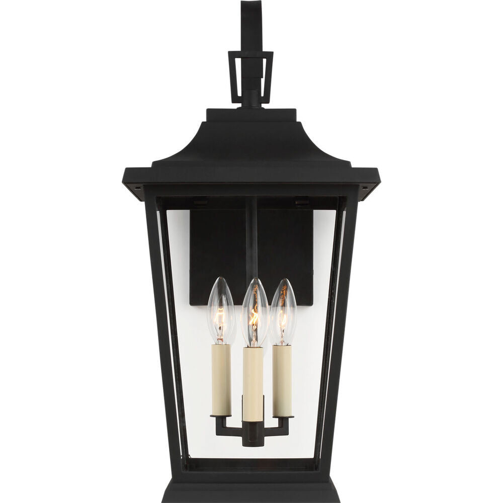 A subtle interplay of traditional design elements creates the charming lantern aesthetic of the Warren outdoor family. The textured black finish paired with clear glass constructed in StoneStrong completes the look.