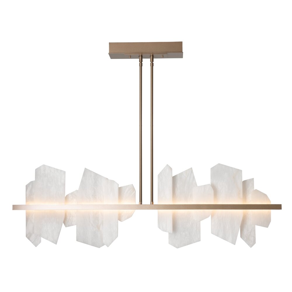 Ancient Egyptian sculptors and artisans chose to work with alabaster for its soft, translucent qualities. In designing the Volterra Linear LED Pendant, sculptor & Designer Paul Marr Hilliard selected it for the same reason. Its translucence is on display, lit by our LED light-guide, with a wash of up and down light to stunning effect. Each piece of alabaster is unique with natural variations in color and texture.