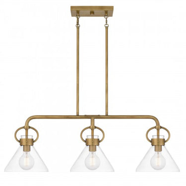 As a pendant, Webster casts a smart and tidy glow thanks to its clear glass shade. This industrial-inspired piece offers a subtle radiance and patina thanks to its weathered brass finish. Webster is also available as a semi-flush mount or larger island light.