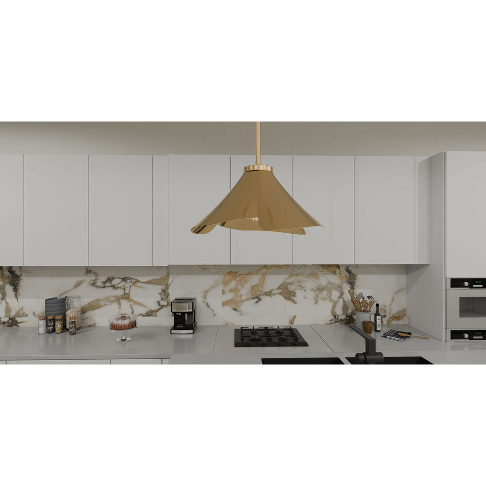 Bring a fresh, modern look to your home with Wisp. The playful silhouette features gentle curves for a flowing and feminine design. Choose from a solid light gold finish - or matte black with gold inside for a two-tone look. Available as a pendant or semi-flush mount light, Wisp makes a great addition to nearly any room in your home.