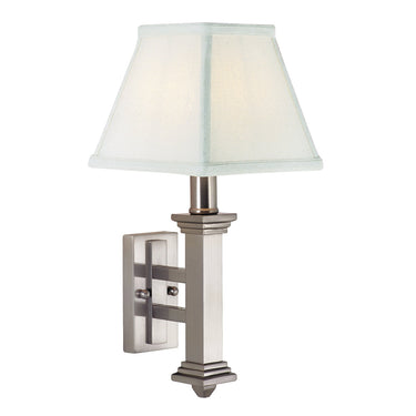 The Traditional styling of this wall sconce by House of Troy incorporates a rugged, masculine arm with a unique four-sided shade. A great find that will accent your decor well in a variety of home or office settings.
