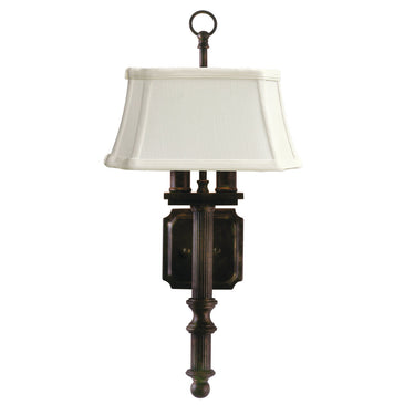 The Traditional styling of this wall sconce by House of Troy incorporates a rugged, masculine arm with a unique shade. A great find that will accent your home decor well in a variety of home or office settings.