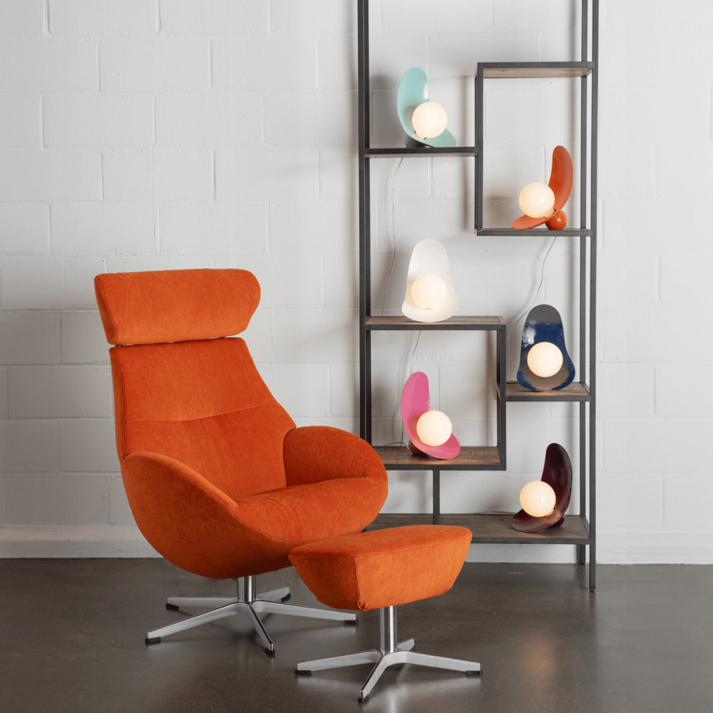 The Yoki lamp's Japanese name appropriately means "liveliness" or "cheerfulness", and can also be translated as "positive spirit or energy". Simple, soft forms create this fun, stylish accent lamp. A decorative G40 bulb is recommended, as shown here. Offered with 11 standard finishes, or ask us about RAL custom colors to complement your decor.