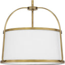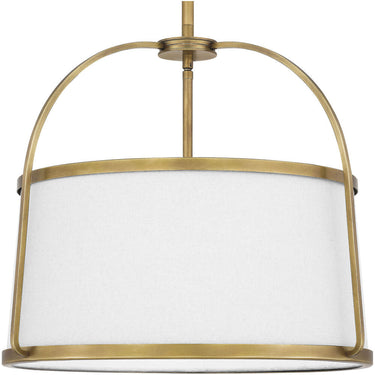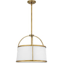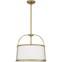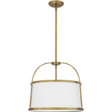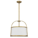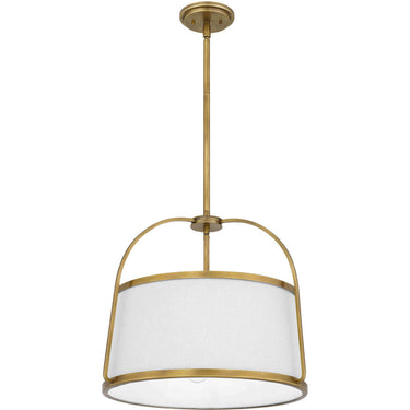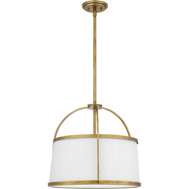 York is an enchanting take on the classic drum shade. This elegant iteration, available as a pendant, features a weathered brass finish. A light beige fabric shade adds in a subtle, tasteful texture.