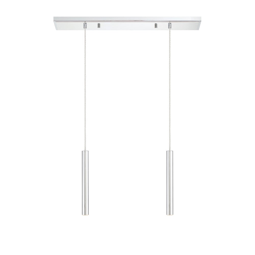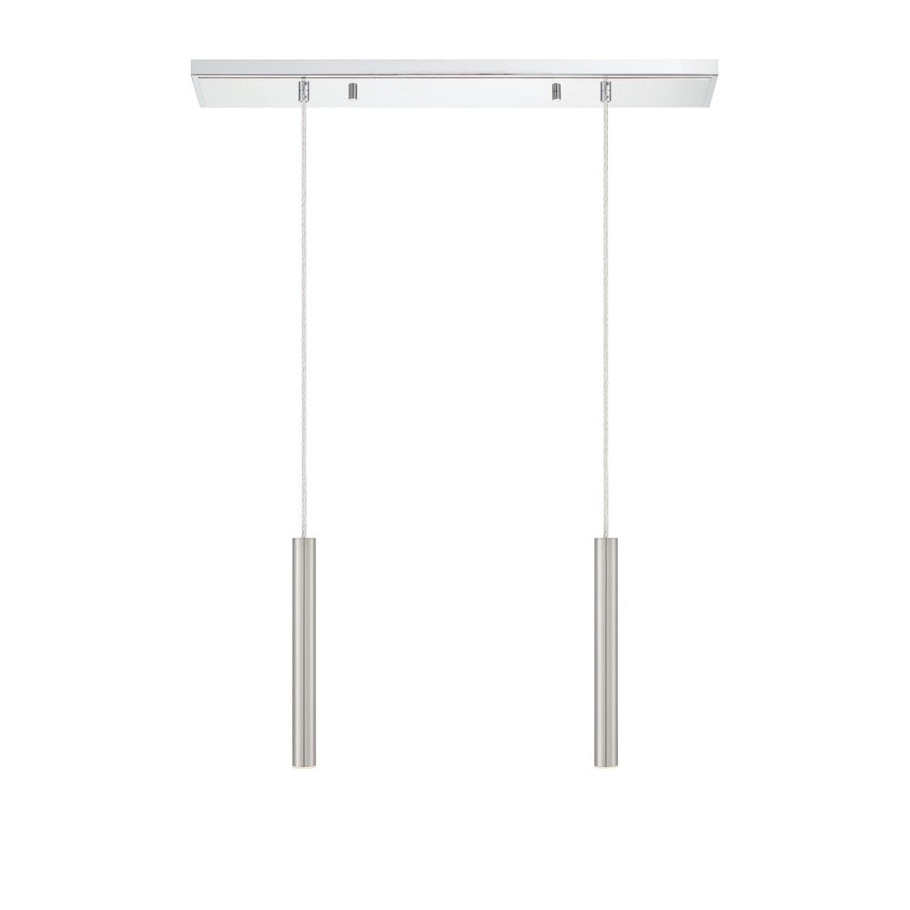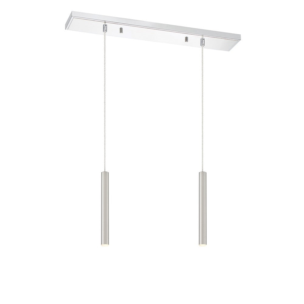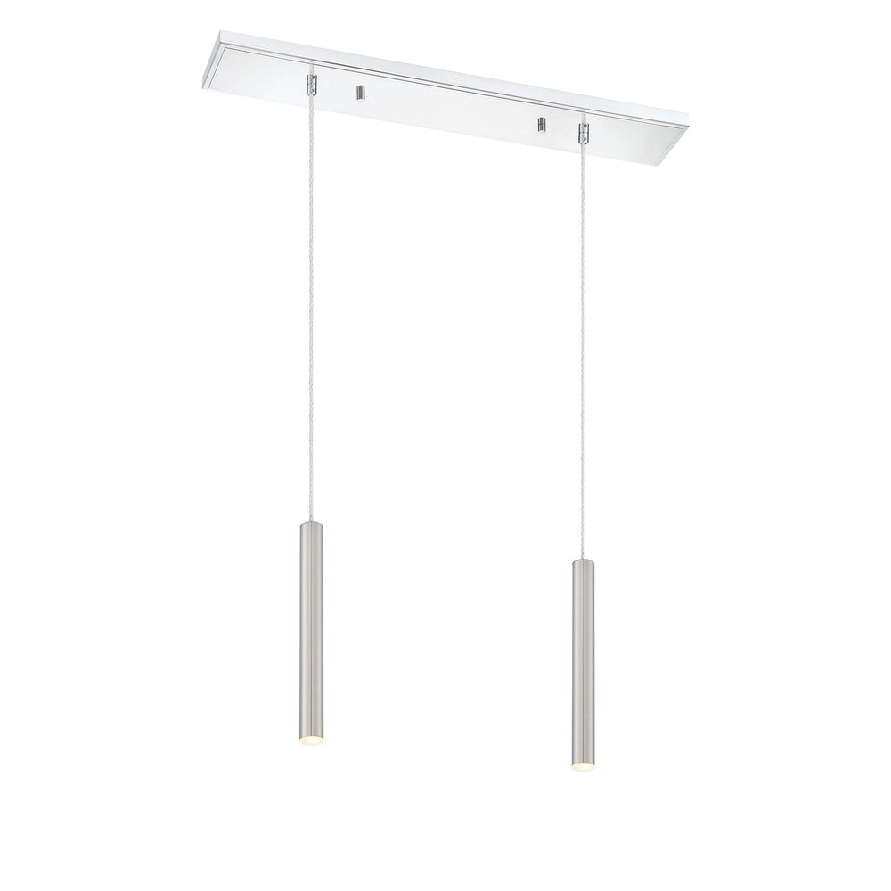 Dress up a sleek space with the clean lines from this two-light pendant light in brushed nickel. Full of elongated details, the modern silhouette adds instant refinement to any kitchen or bathroom.