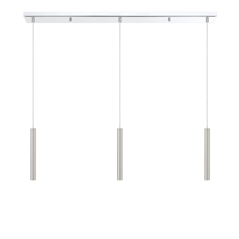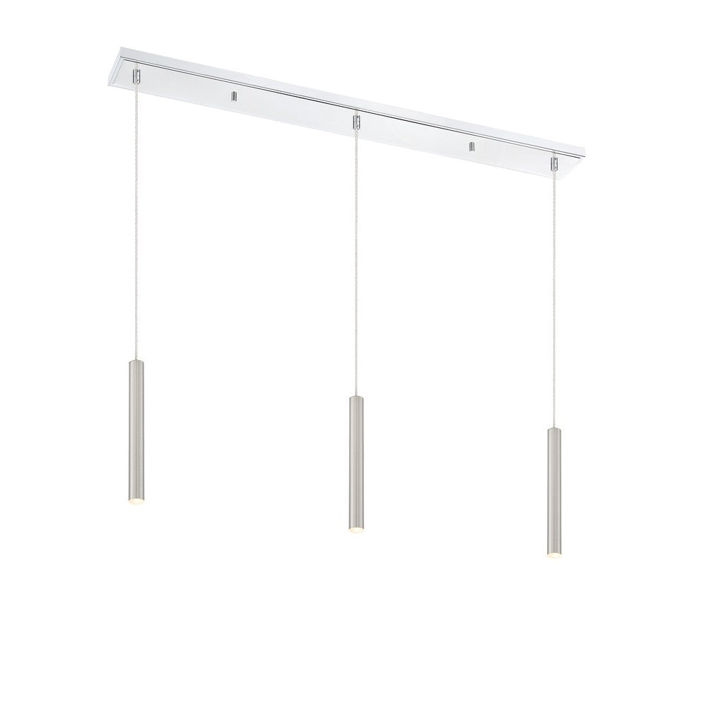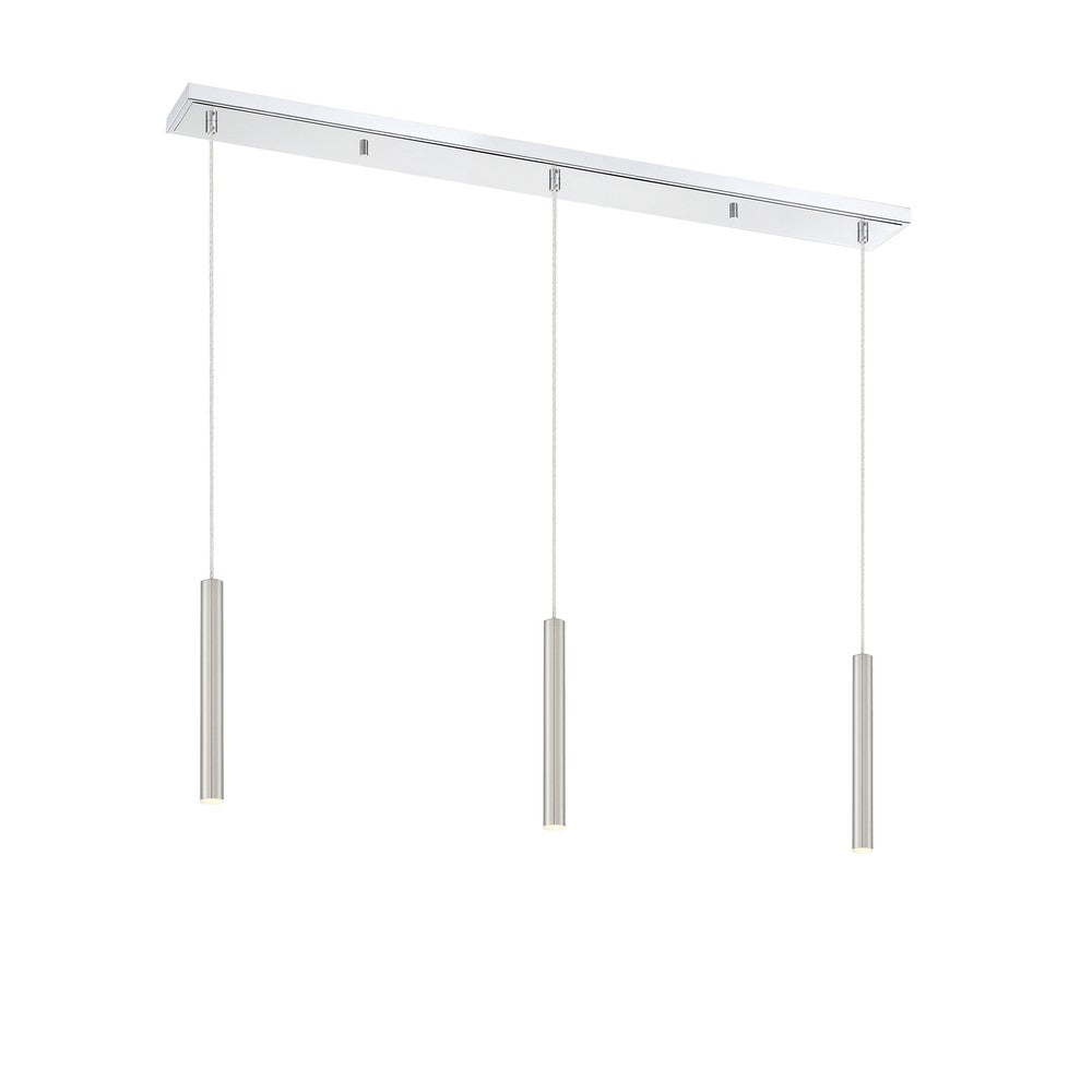 Construct a breathtaking modern visual with the delicate features from this stunning three-light pendant light. Windchime-inspired, the elongated lights boast a bright brushed nickel finish.