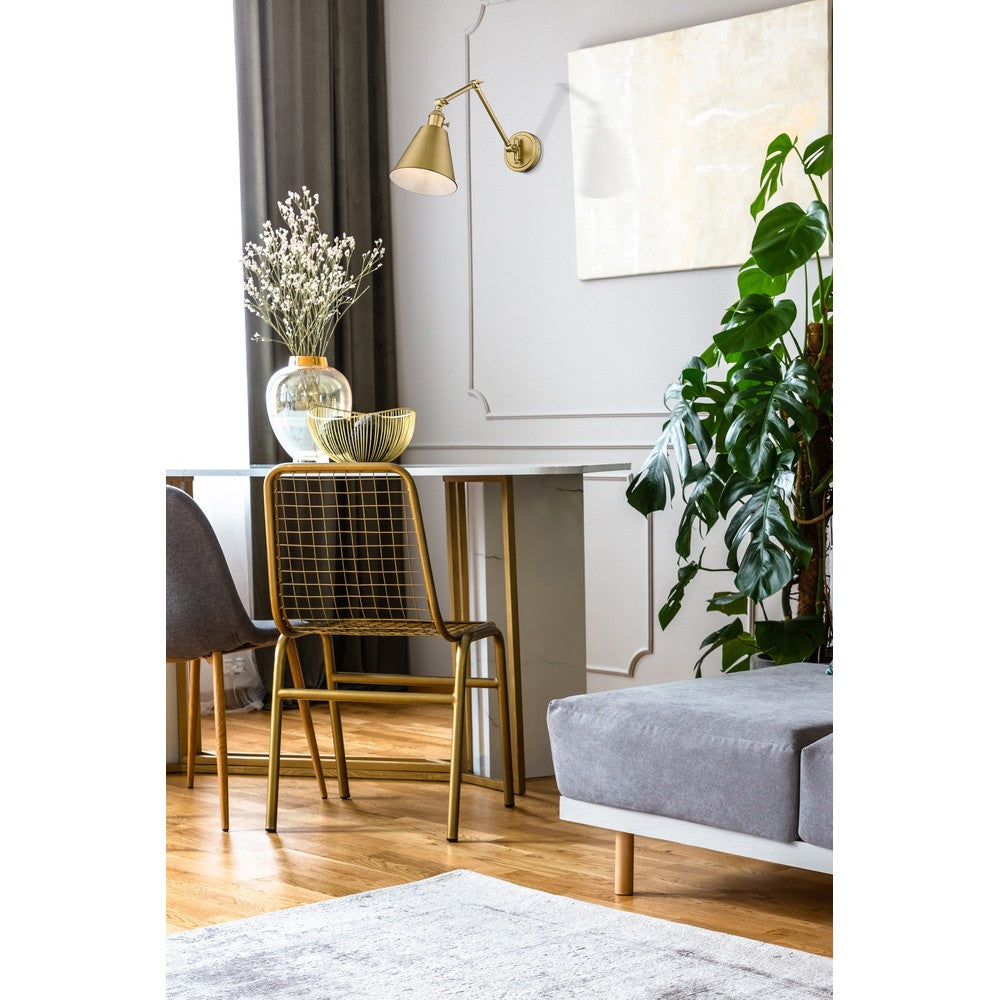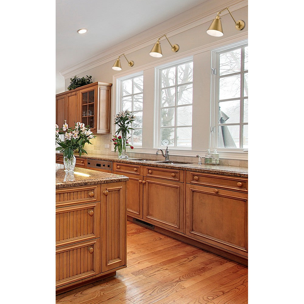 Able to suit both contemporary and traditional environments depending on the shade selected, the Gayson wall sconce pairs fashion with function due to an articulating arm that allows the light to be precisely aimed. It is available for hardwire installation or with an optional cord and plug and can be ordered in the following finishes: Brushed Nickel, Matte Black, Rubbed Brass, and Modern Gold.
