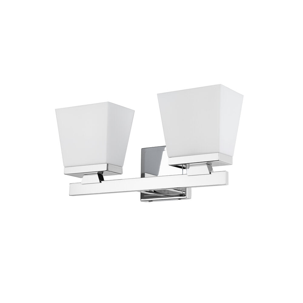 A modern farmhouse fixture with sleek lines, this two-light vanity boasts an etched opal glass shade. The fixture's steel construction is finished in brushed nickel for a harmonious display in your bathroom or hallway.