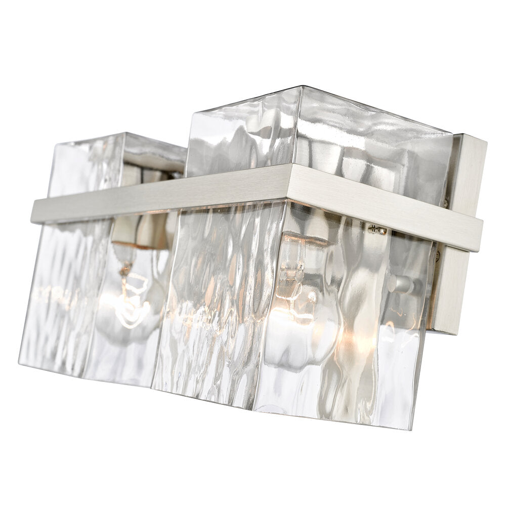 Ideal for bathrooms, this two-light vanity adds an alluring touch to your space. The brushed nickel finish allows it to match many types of decor.