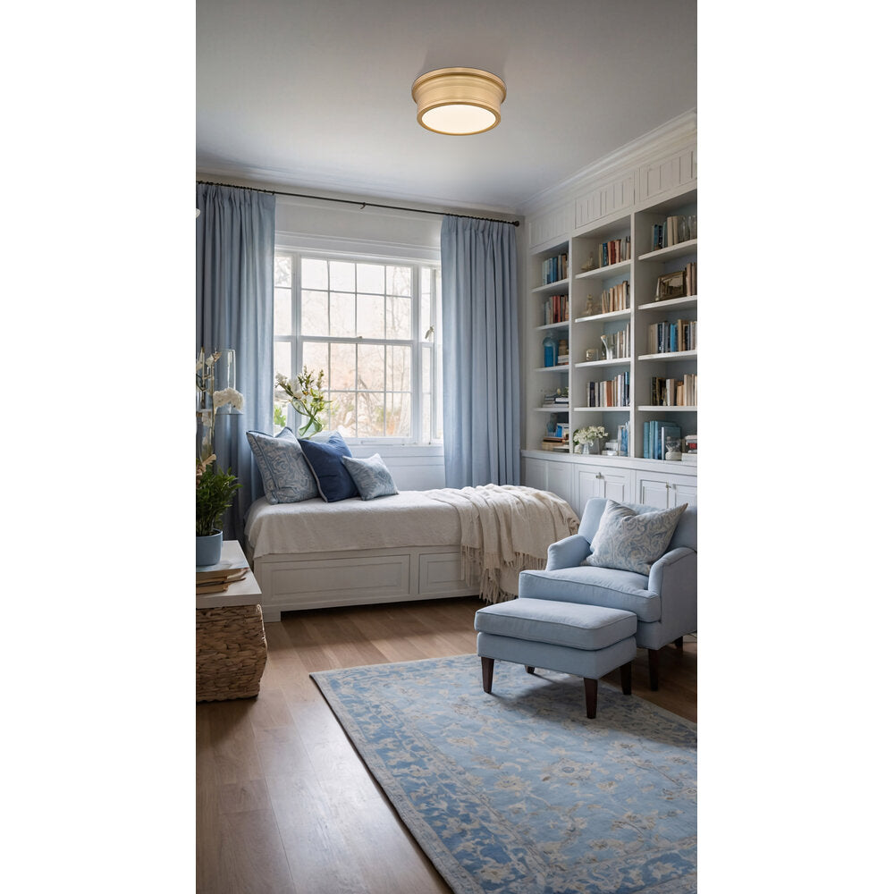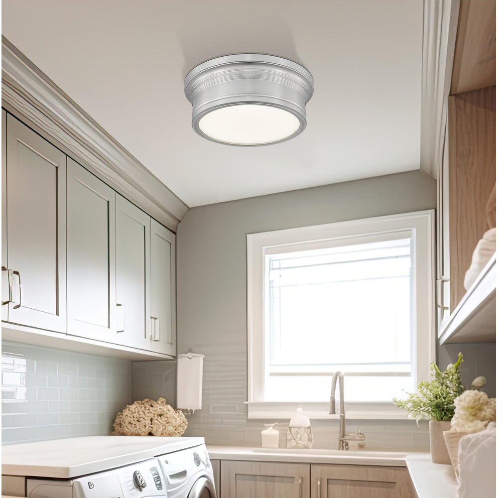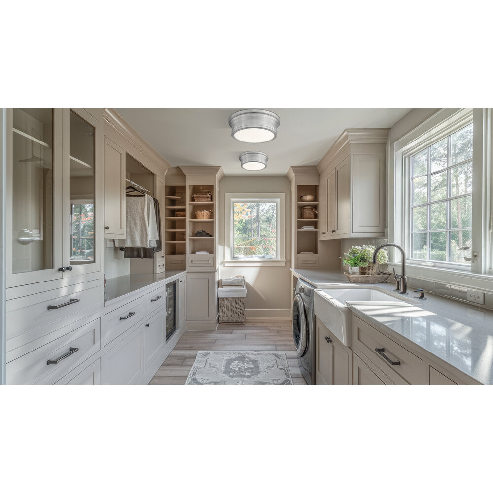 With its stepped metal trim and compact footprint, this brushed nickel traditional LED flush mount ceiling light brings a tailored architectural touch to hallways, laundry rooms, and smaller bedrooms. The circular acrylic lens spreads calm, usable light that makes everyday tasks feel easier, from sorting clothes to reading bedtime stories, while the finish coordinates smoothly with existing hardware. Installed in multiples down a corridor or centered in a cozy room, this understated fixture lends a sense of continuity that helps the home feel thoughtfully connected from space to space.