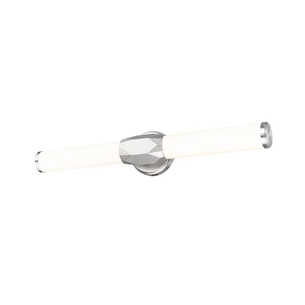 Sneak Art Deco inspiration into a stylish one-light vanity light, enhancing contemporary and transitional bath spaces. Aluminum framing with a cool brushed nickel finish includes end caps and a prism-inspired holder, embellishing the rich geometric and complete package of a light fixture with optional color temperature values.