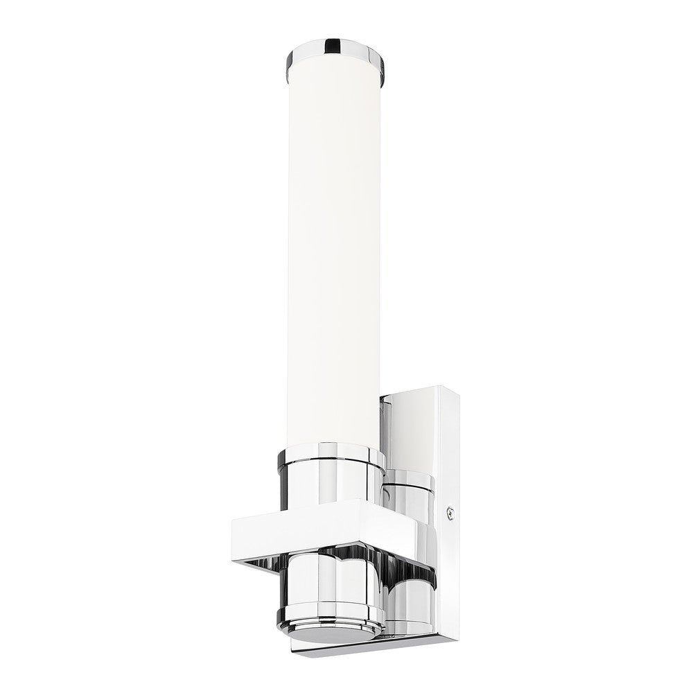 A brushed nickel finish square cuff and cylindrical light create chic style for this modern LED wall sconce. Perfectly adapted for a variety of settings, it features an energy efficient, dimmable LED light source and a chic opal glass shade that casts soft, inviting illumination. The light is dimmable and color selectable, creating flexibility to suit any space.