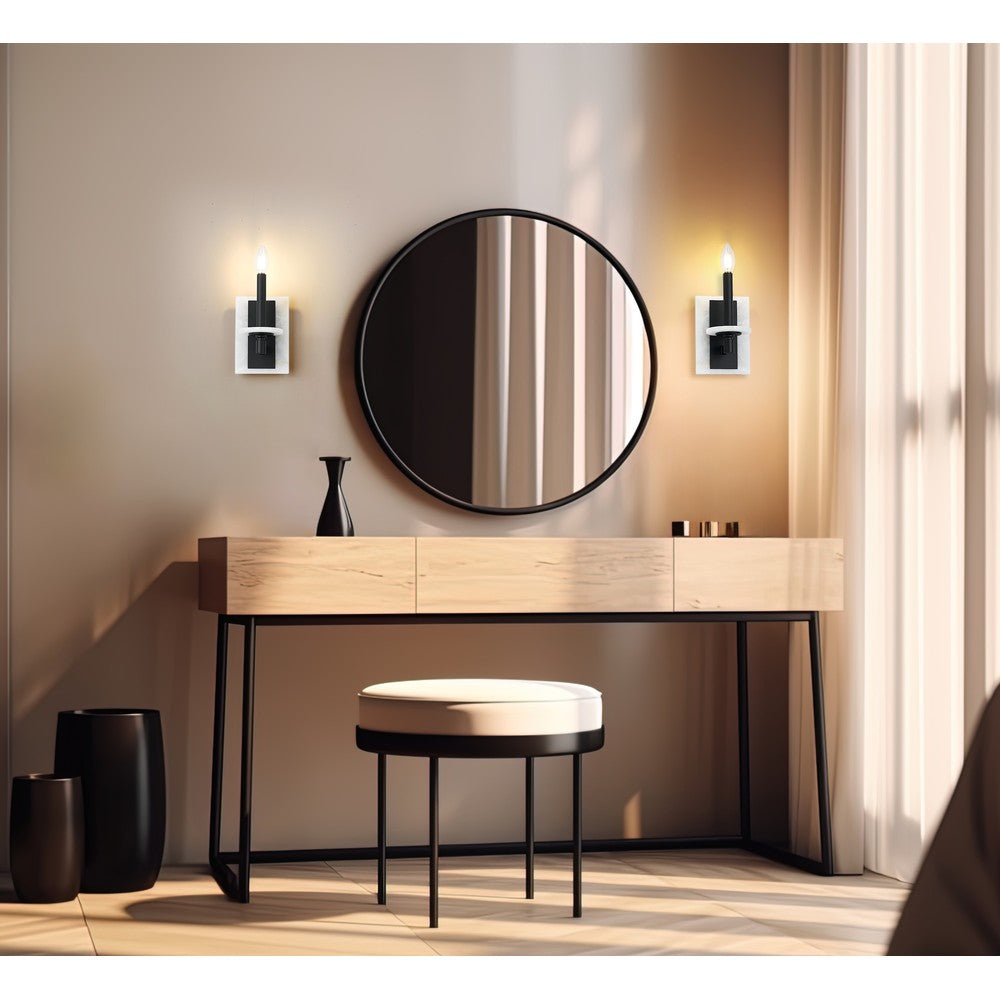 Minimal in scale yet maximal in impact, this matte black sconce pairs effortlessly with its solid alabaster plate. The contrast is striking, the glow beautifully diffused. It is a sculptural accent that feels as thoughtful as it is functional.