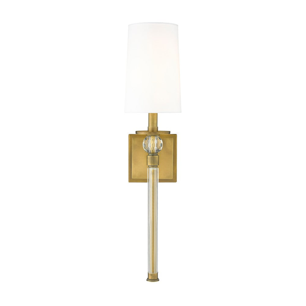 Click for the Spec sheet of Z-Lite Mia Rubbed Brass 1 Light Wall Sconce - White