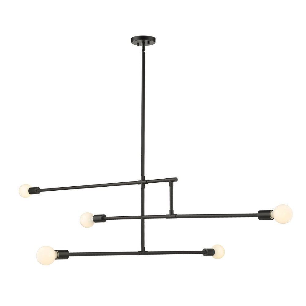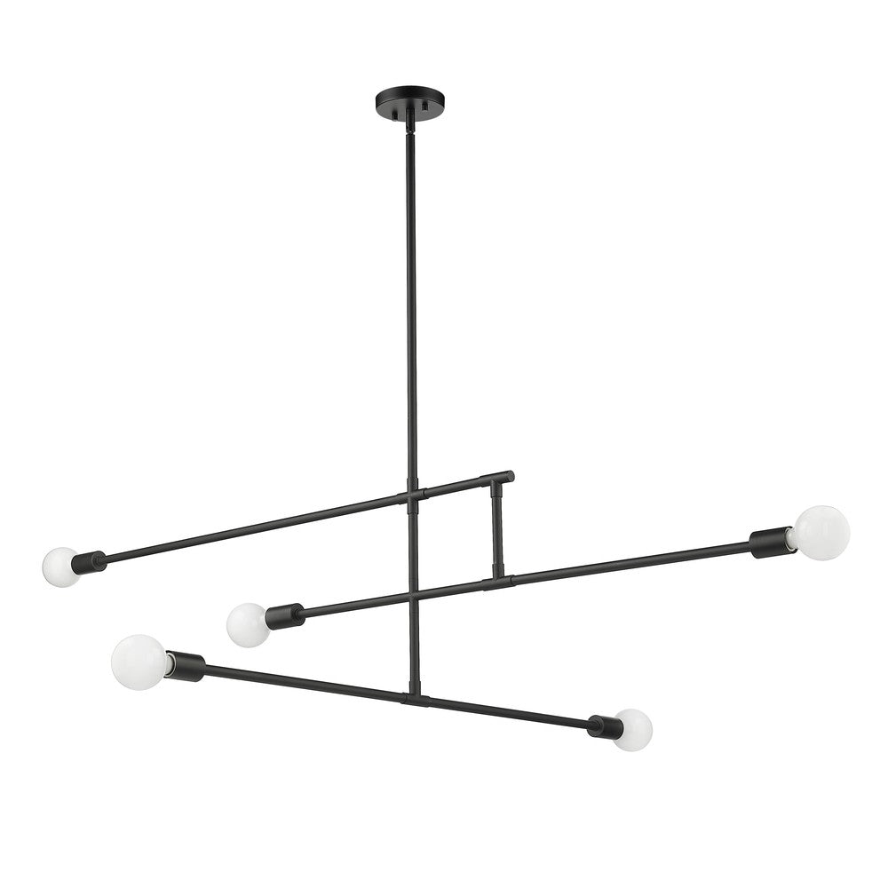 Bold linear styling adds surprising character to contemporary spaces, forming a linear shape that makes this five-light chandelier from the Modernist collection stand out as an uplifting accent with a hint of industrial flavor. Bring fresh lighting and elegant aesthetics to a modern dining or living space with this chandelier crafted of matte black finish steel construction. Stark geometric parallel and perpendicular silhouetting turns low-key, simple visuals into an eye-catching addition to primary decor.