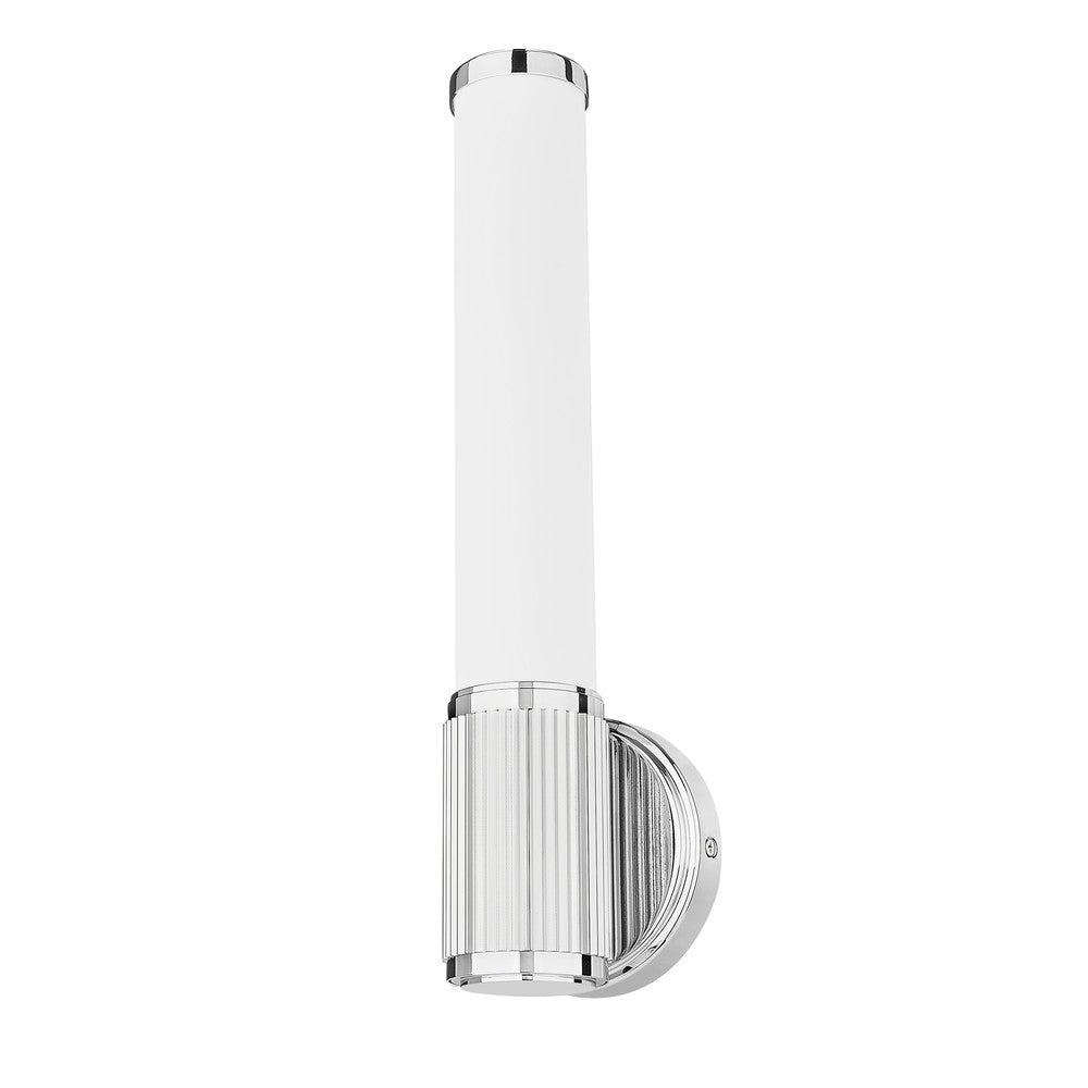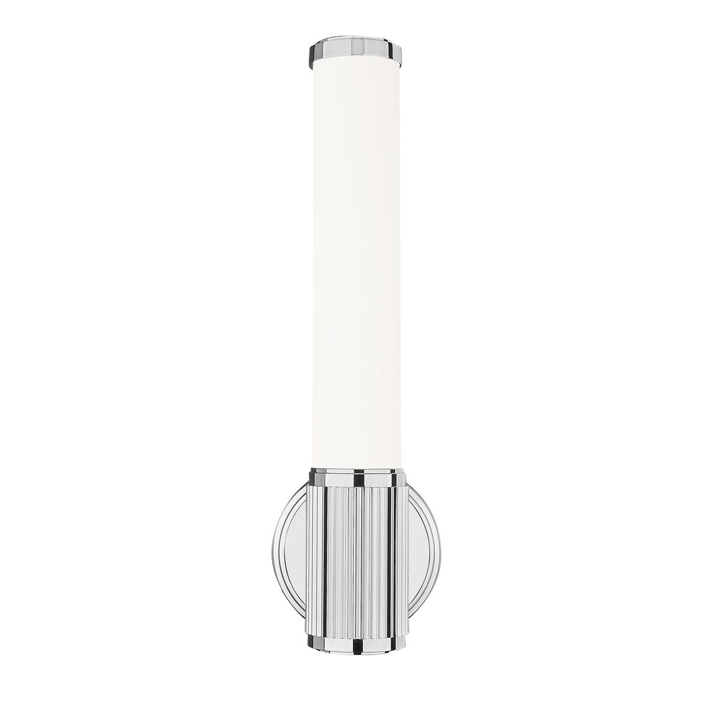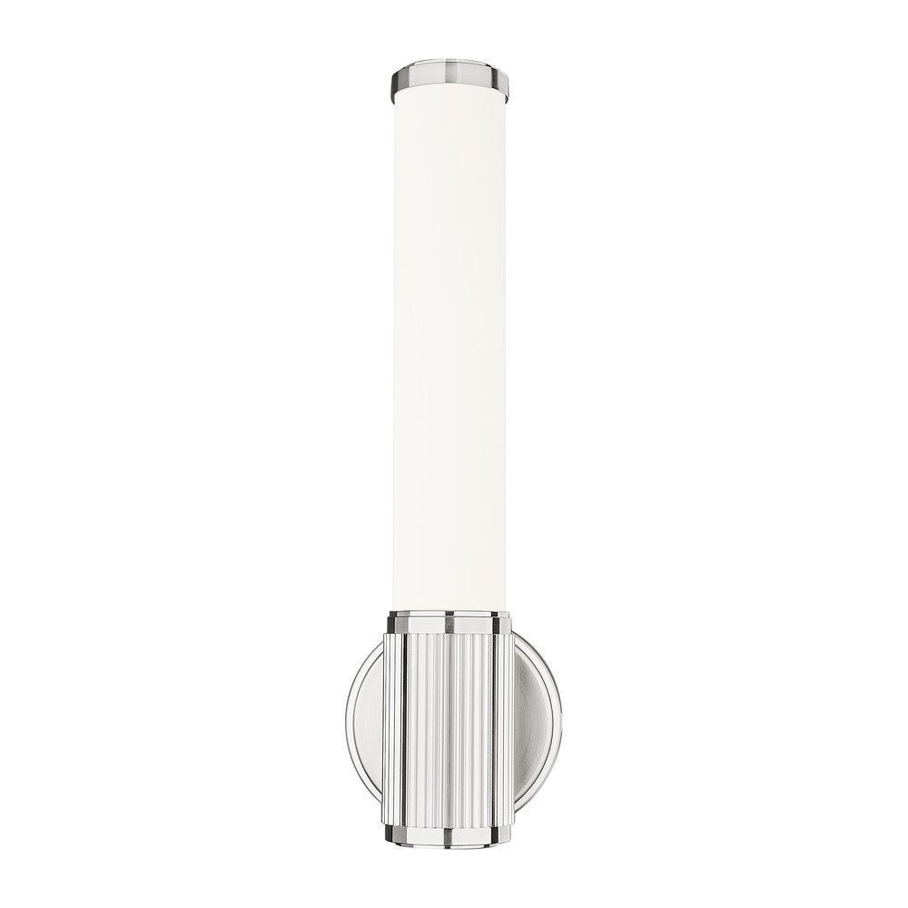 Fluting adds texture and depth to the simple steel cuff featured on this modern LED wall sconce with a brushed nickel finish. Designed to make a statement without overwhelming surrounding decor, it boasts a tall, slim silhouette with a cylinder of opal glass that serves as a chic shade, diffusing illumination for an inviting glow.