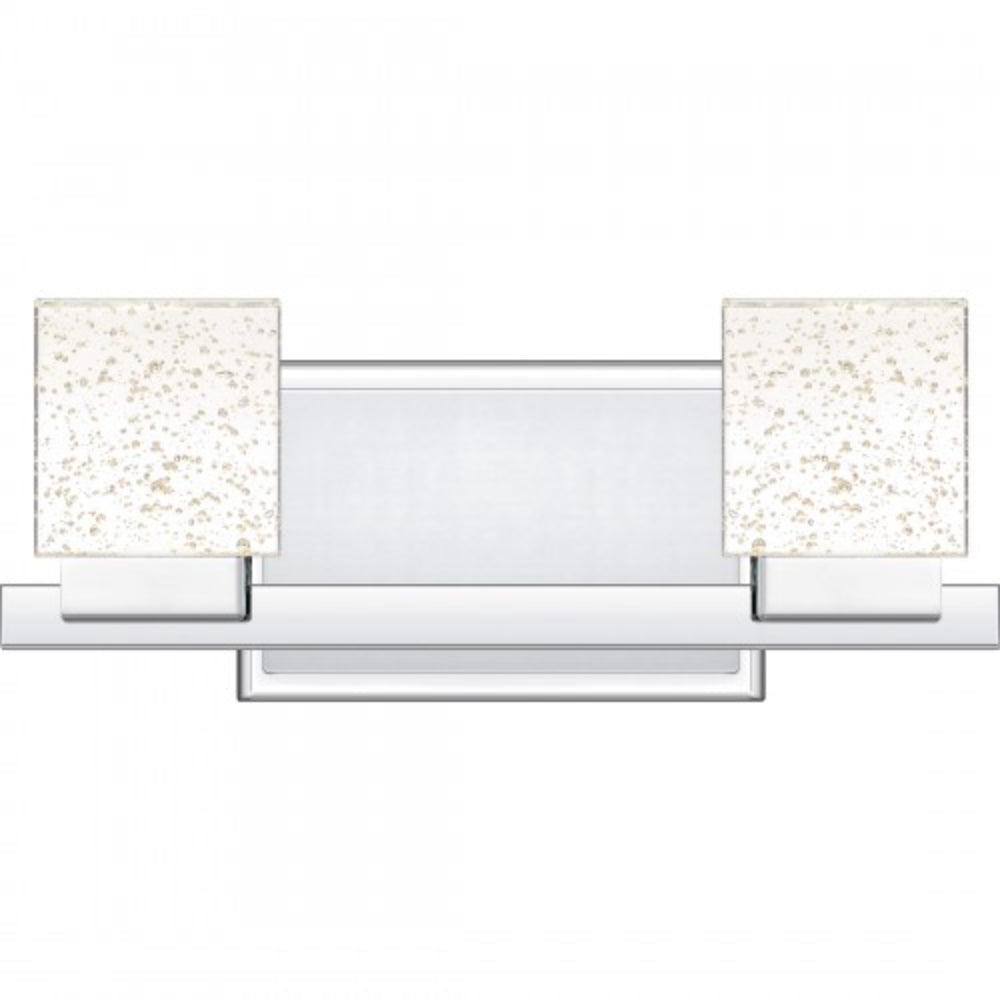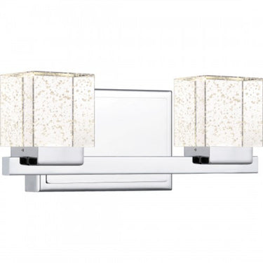 As part of our Platinum Collection, Zola offers a contemporary vanity lighting solution. Integrated LED technology pairs with a high-shine polished chrome finish for a look that is both stylish and energy-efficient. Square bubble glass shades complete the look of the bath light, adding visual appeal and luxury to the overall design.